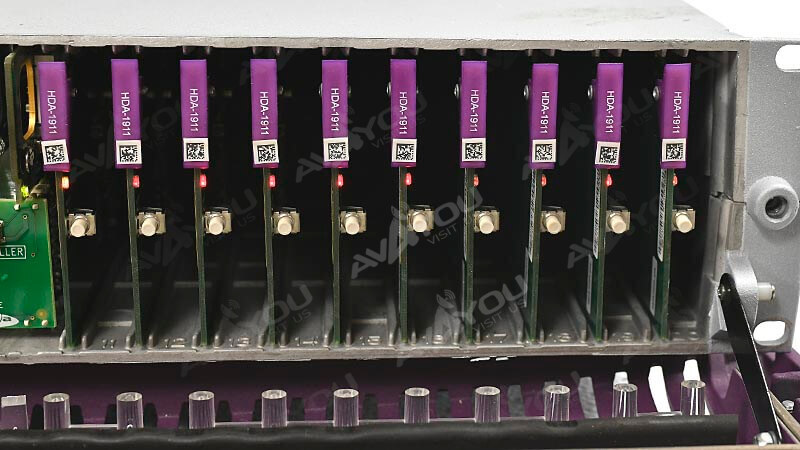 For sale is ONE (1) Miranda Densite 2 Frame with 20x HDA-1911 Reclocking 3G-SDI DA & single backplane for 1x4 DA configuration. All cards were tested good. Because we have a quantity of these, appearances may vary, but condition is guaranteed to be better or equal to pictured sample. Power cords are not included unless mentioned in the description. We have a few units for sale (1 per listing price). This is one of them. All others are in same condition.