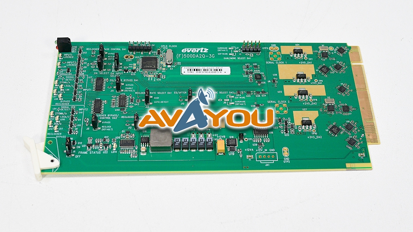 The 500DA2Q-3G features two auto-equalized inputs and can be individually set via jumpers for either reclocking or non-reclocking.