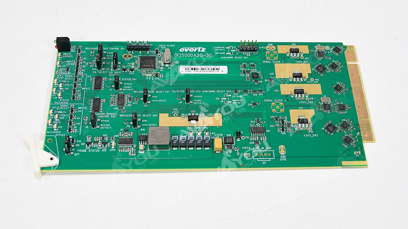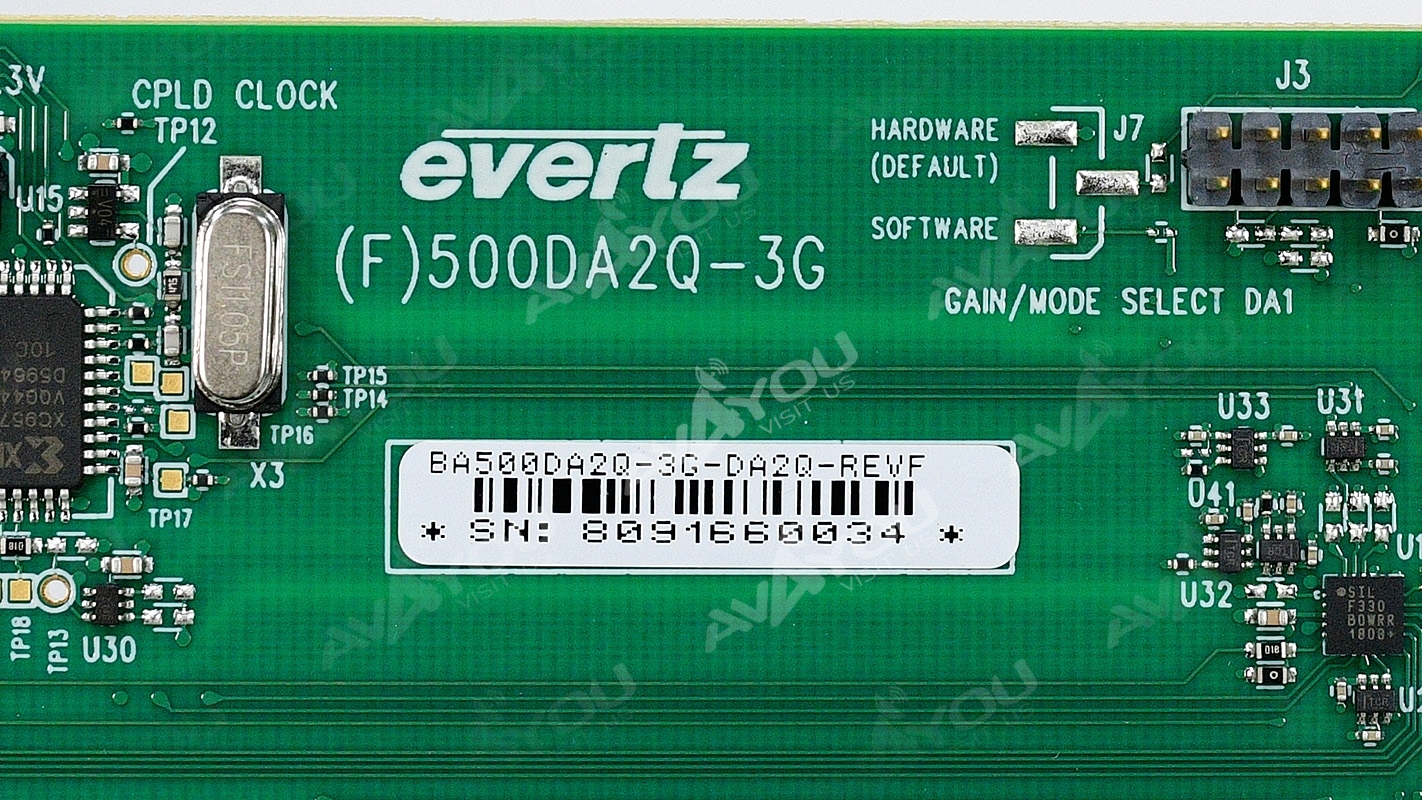 For sale is ONE (1) used dual SD/HD/3G DA card that fits 500FR (frame not included). Newesr rev.F. Excellent condition. Because we have a quantity of these, appearances may vary, but condition is guaranteed to be better or equal to pictured sample. Serial numbers are unique to each unit sold and may be different from one depicted in the photos - we record all serial numbers of all items shipped. If you are looking for any other Evertz modular cards - we probably have them. Thousands of cards available. Check out our inventory.