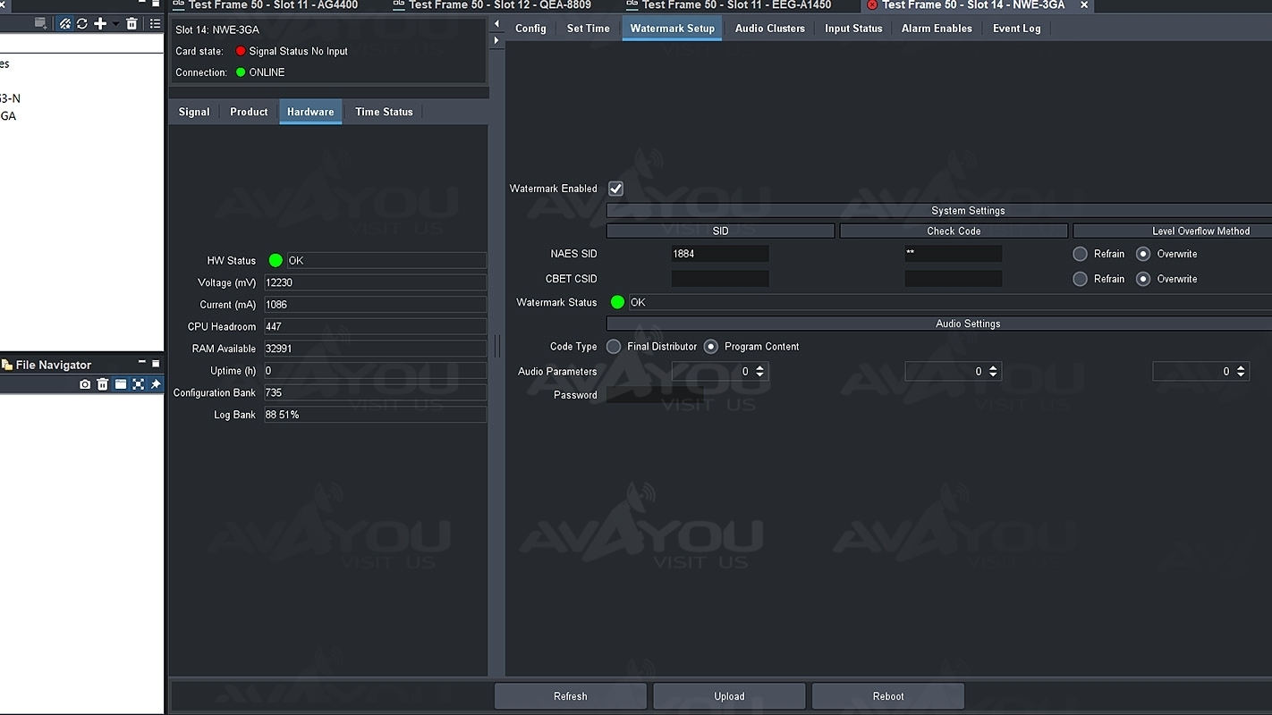 The NWE-3GA is the ideal solution for inserting Nielsen® Watermarks into the audio for television programming. The timestamp structured watermarks make use of the SID (Source Identifier), which is a serial number used by Nielsen® and the television industry to uniquely identify program content, to ensure proper crediting of viewing.