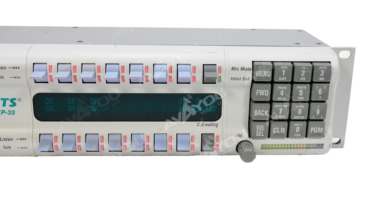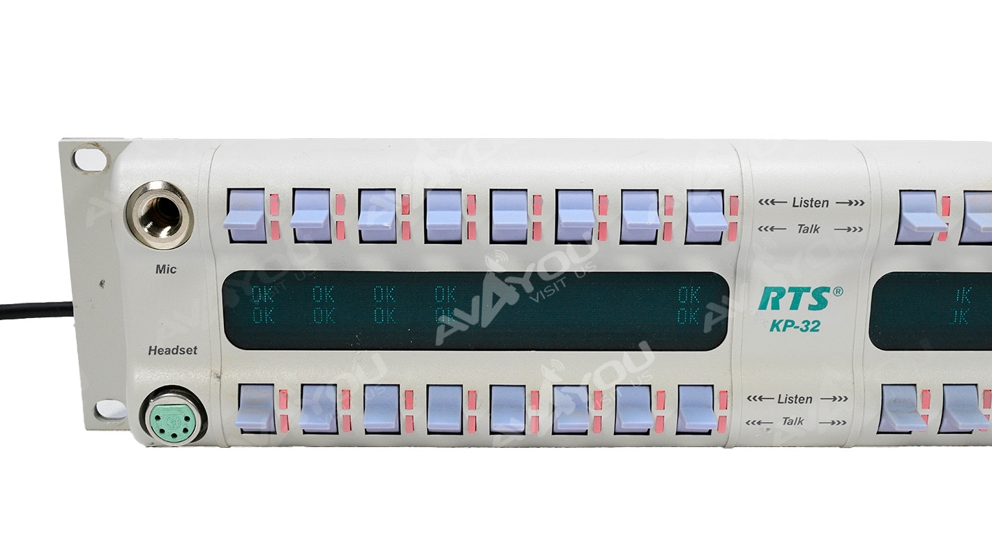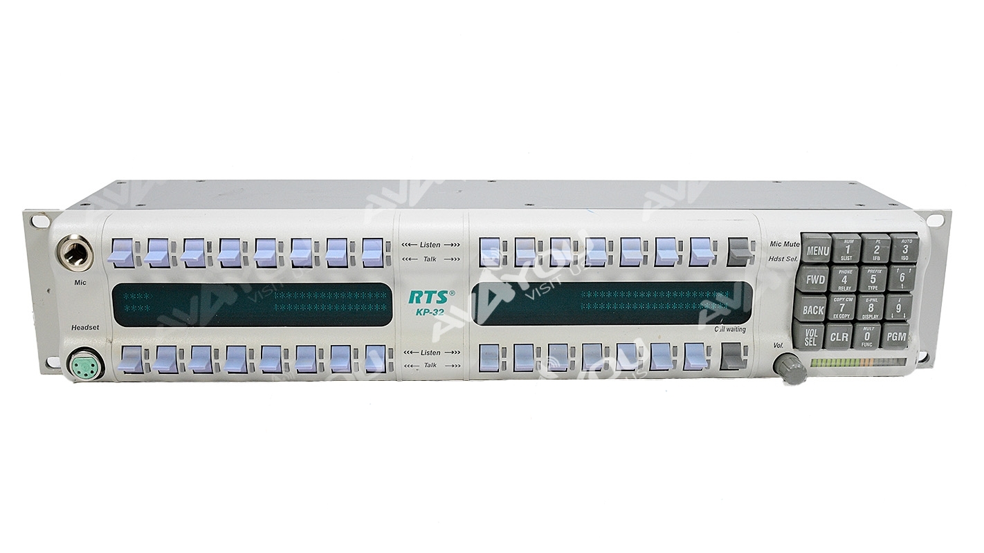 The RTS model KP-32 Classic keypanel fits in a standard 19 inch rack and is two rack spaces high. It has 32 lever keys: 30 keys are for intercom talk/listen assignment; one key is for call waiting response; and one key is for headset/microphone/program selection and volume setup. The KP-32 Classic combines all of the programmable features of the KP-12 keypanel. The KP-32 Classic features digital signal processing and binaural headset operation with left/right assignment of audio signals. It also has large, super-bright, long-life fluorescent displays with adjustable brightness control, making it suitable for all types of ambient lighting.