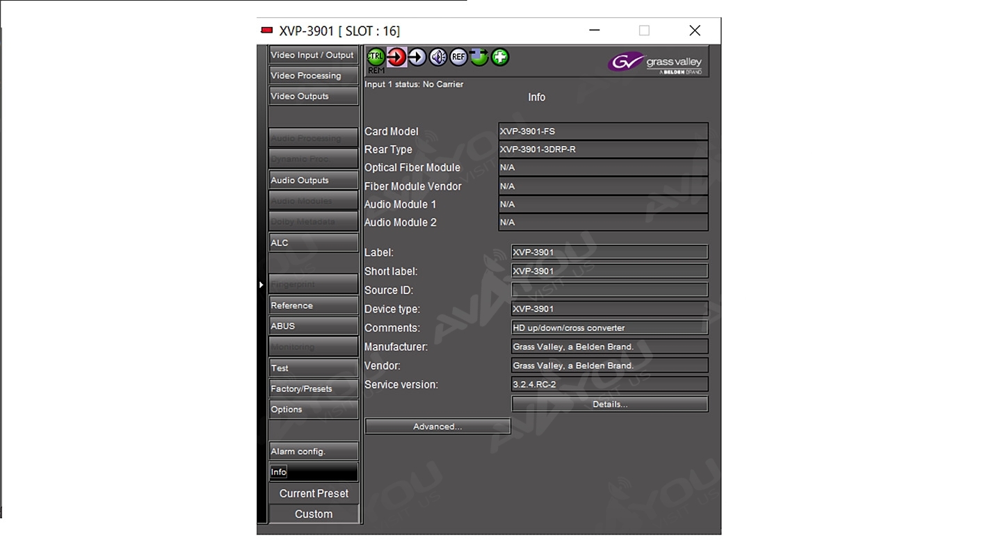 For sale is ONE (1) used XVP-3901-FS-R board in very good condition. Comes with 3DRP-R backplane. Optional ALC-2 licenses is included. Card can be mounted in 3RU frame. Because we have a quantity of these, appearances may vary, but condition is guaranteed to be better or equal to pictured sample. Serial numbers are unique to each unit sold and may be different from one depicted in the photos - we record all serial numbers of all items shipped. If you are looking for any other Miranda modular cards - we probably have them. Thousands of cards available. Check out our inventory.
