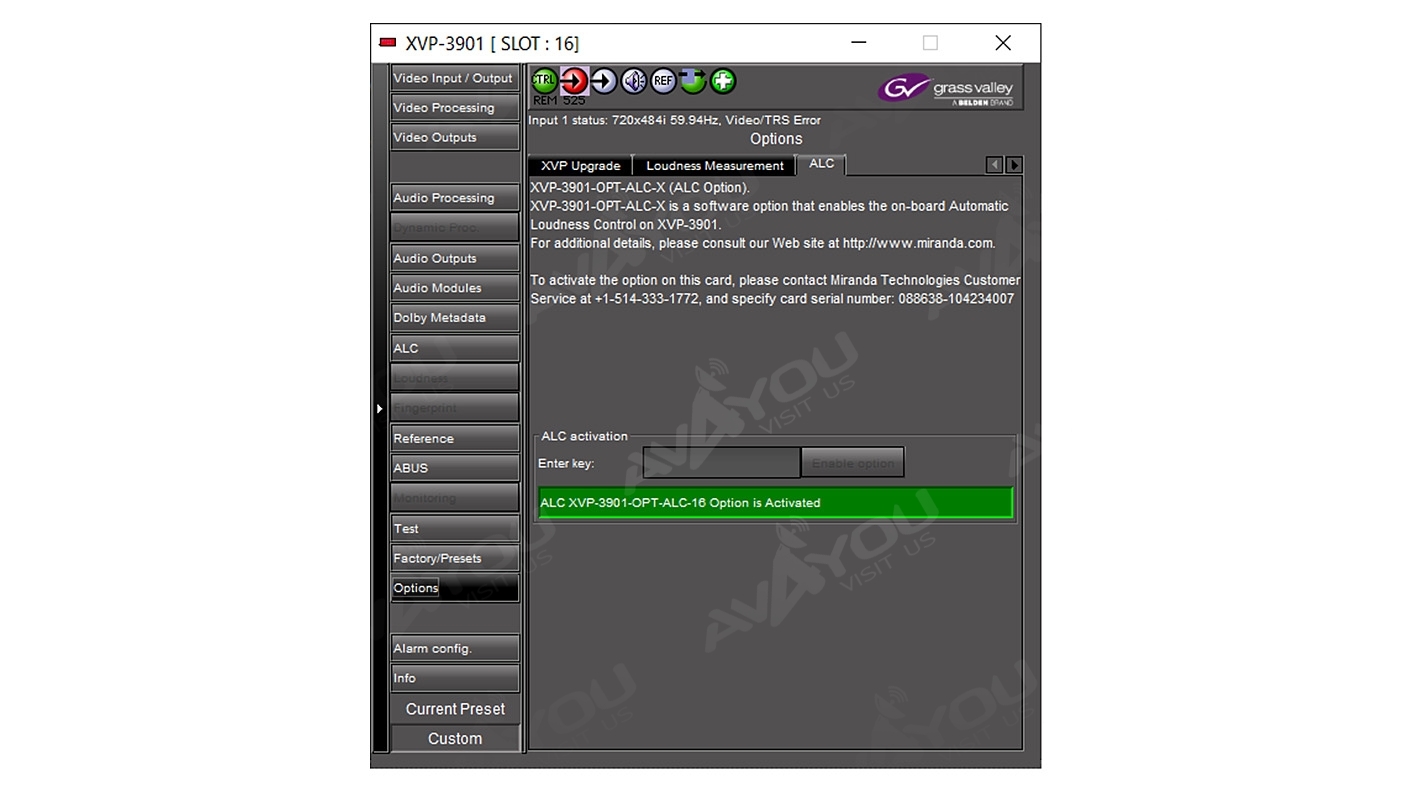 • XVP-3901-OPT-ALC-16 16-channel on-board ALC option by Grass Valley