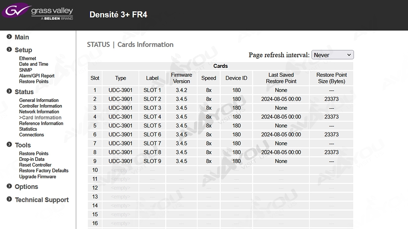 For sale is ONE (1) used UDC-3901 Up Down Cross utility converter in very good condition. Comes with a single 3+SRP backplane that fits 4RU FR4 Densite+ frame. Because we have a quantity of these, appearances may vary, but condition is guaranteed to be better or equal to pictured sample. Serial numbers are unique to each unit sold and may be different from one depicted in the photos - we record all serial numbers of all items shipped. If you are looking for any other Miranda modular cards - we probably have them. Thousands of cards available. Check out our inventory.