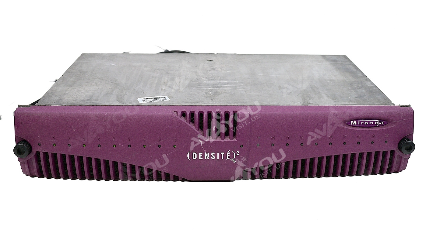 For sale is ONE (1) used Densite 2 frame with 5x Dual 3G-SDI DA cards. 2x (1x4). All cards come with their corresponding backplanes - DRP-F. Because we have a quantity of these, appearances may vary, but condition is guaranteed to be better or equal to pictured sample. Serial numbers are unique to each unit sold and may be different from one depicted in the photos - we record all serial numbers of all items shipped. Power cords are not included unless otherwise mentioned. If you are looking for any other Miranda modular cards - we probably have them. Thousands of cards available. Check out our inventory.
