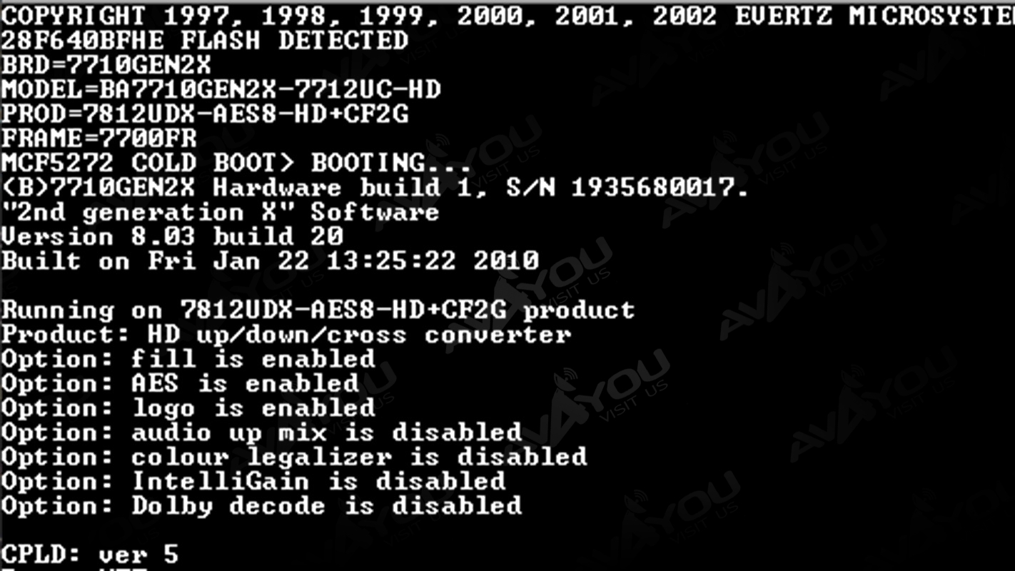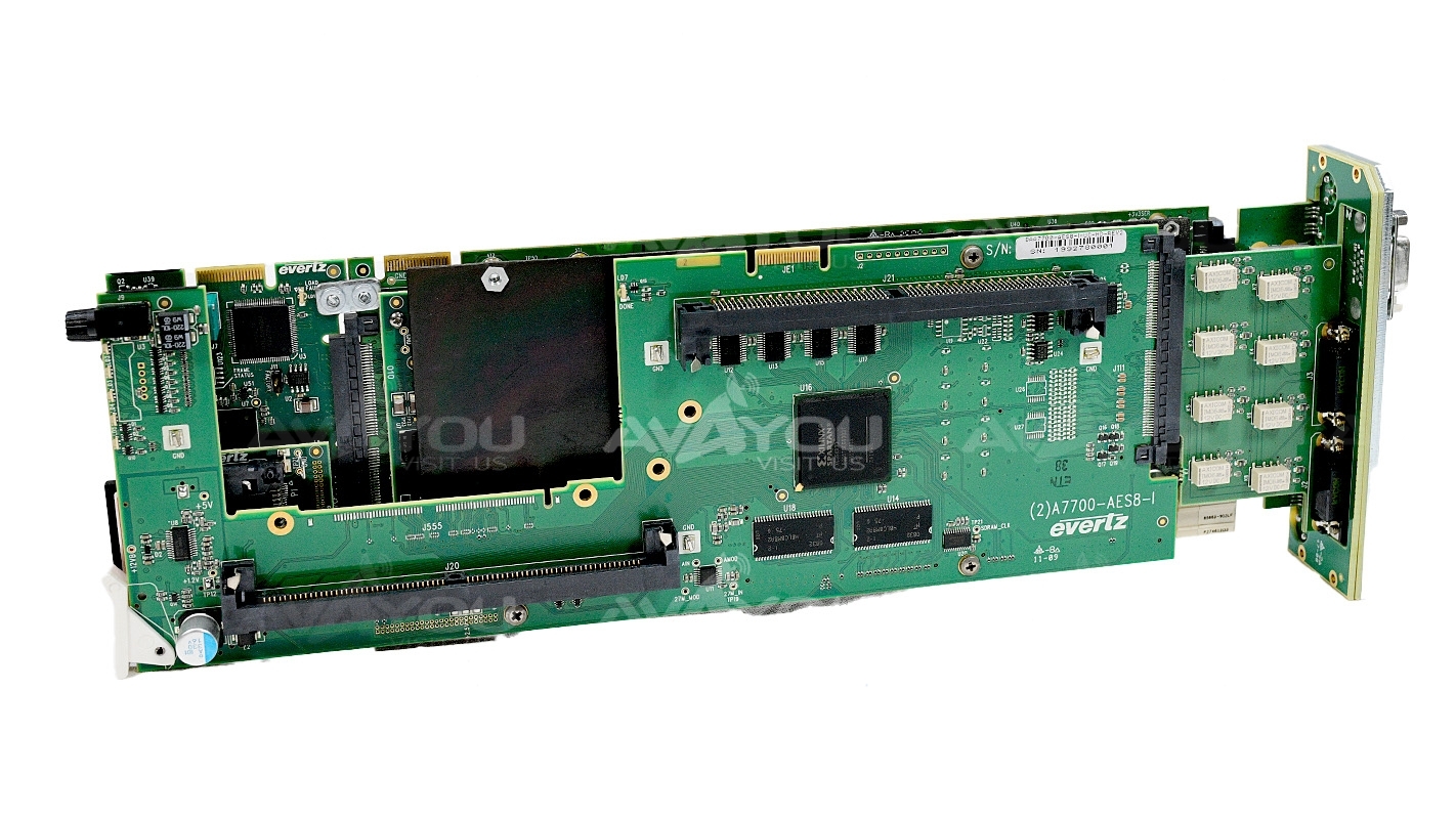 For sale is ONE (1) used up/down/cross converter board in very good condition. Board comes with +3RU backplane that supports 8 external AES inputs and 8 AES Outputs. AES option is enabled on these cards as well as +F Fill and Logo. Because we have a quantity of these, appearances may vary, but condition is guaranteed to be better or equal to pictured sample. Serial numbers are unique to each unit sold and may be different from one depicted in the photos - we record all serial numbers of all items shipped. If you are looking for any other Evertz modular cards - we probably have them. Thousands of cards available. Check out our inventory.