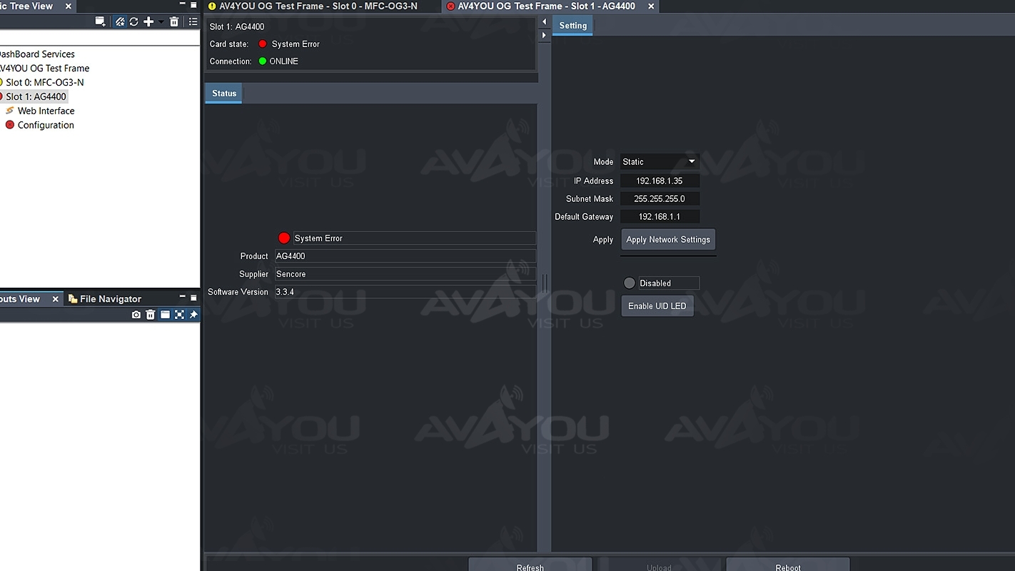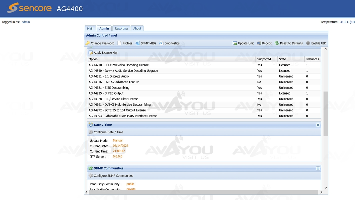 The AG 4400 receiver decoder card offers satellite, IP, ASI, and 8VSB/QAM-B and DVB-T/T2/C/C2/ISDB-T inputs for flexible installation into a variety of video delivery systems. Optional integrated DVB-CI descrambling, as well as BISS-1/E/2/CA capabilities, makes the AG 4400 a powerful solution for receiving feeds from primary distribution.