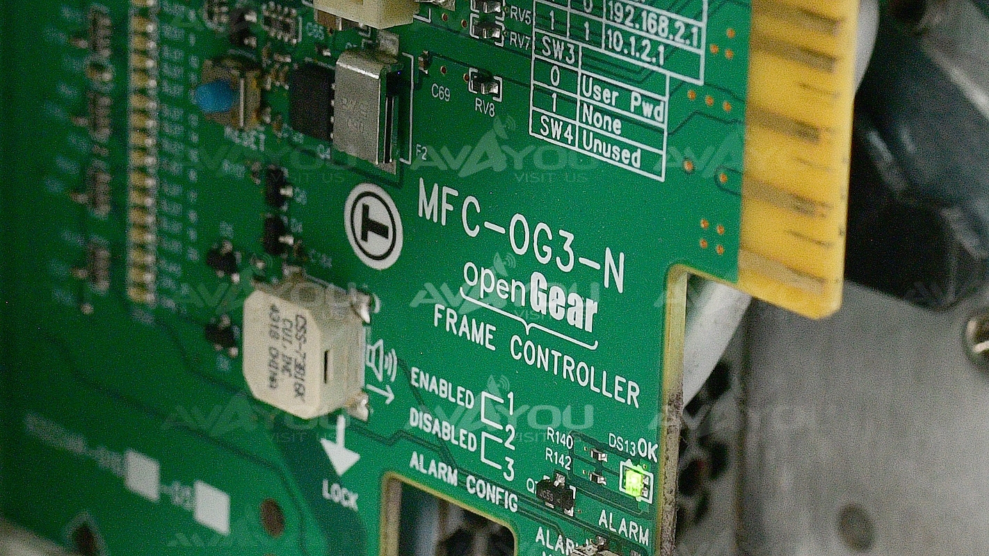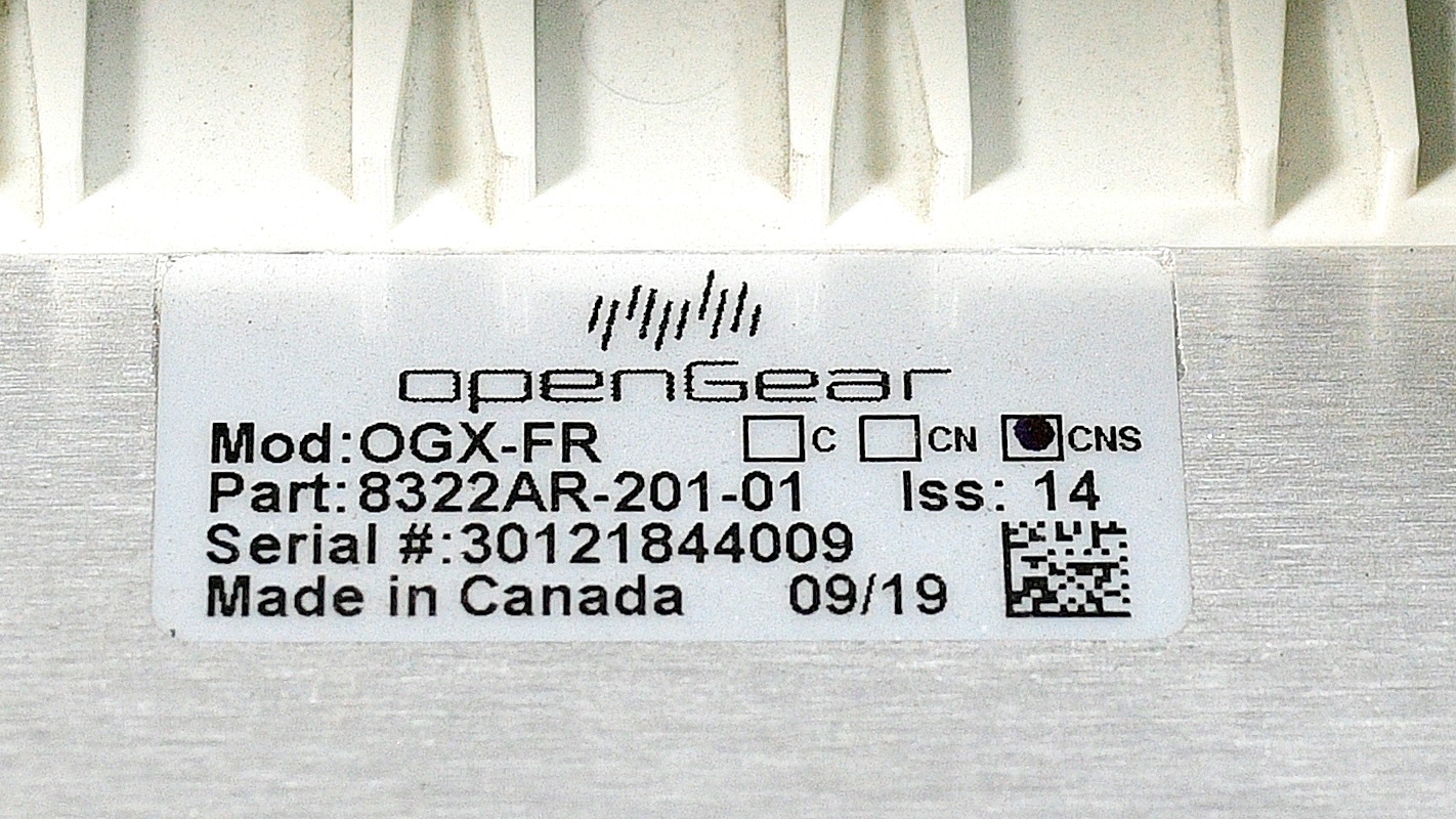For sale is ONE (1) used OGX-FR CN/CNS frame with MFC-OG3-N controller in good to very good condition. Seven blank panels are included. There are some scratches, like on top of the cover. Some of these units will have Ross and some Sencore sticker as a logo. Frame has both power supplies and FC. Both power supply work fine. Because we have a quantity of these, appearances may vary, but condition is guaranteed to be better or equal to pictured sample. Power cords are not included unless otherwise mentioned. Serial numbers are unique to each unit sold and may be different from one depicted in the photos - we record all serial numbers of all items shipped. If you are looking for any other Ross modular cards - we probably have them. Thousands of cards available. Check out our inventory.