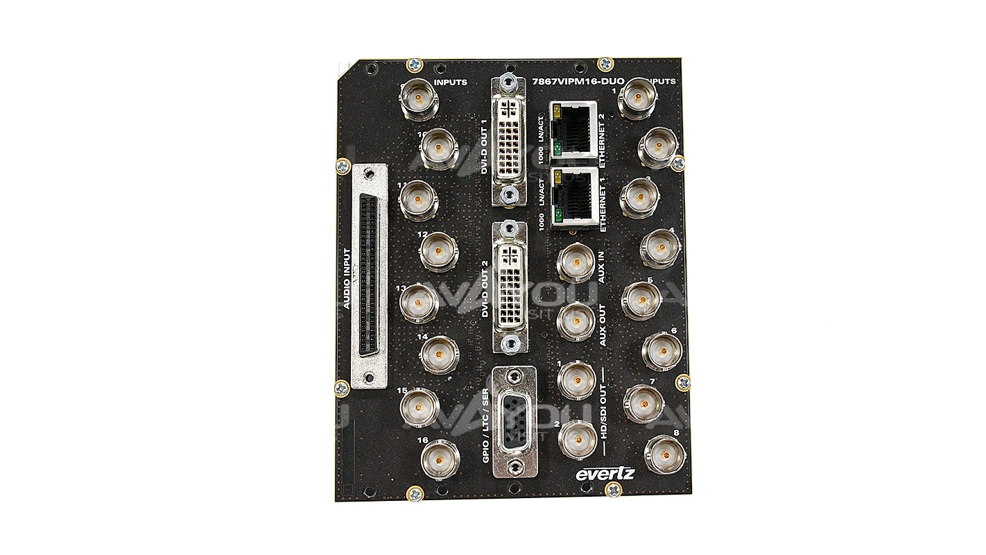 The 7867VIPM series is the latest addition to the Evertz® award winning multiviewer product line. With outstanding image quality, and an industry leading feature set, the 7867VIPM series is a powerful, compact multi-image display processor. The VIPM series are available in two sizes: eight inputs and 16 inputs, each with up to 2 outputs.