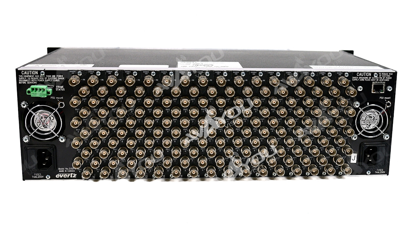 For sale is ONE (1) used Evertz 500FR with 16x 500da-HD cards included. Frame has both power supplies, no controller as 16 of the cards are fited. Because we have a quantity of these, appearances may vary, but condition is guaranteed to be better or equal to pictured sample. Serial numbers are unique to each unit sold and may be different from one depicted in the photos - we record all serial numbers of all items shipped. Power cords are not included unless otherwise mentioned.