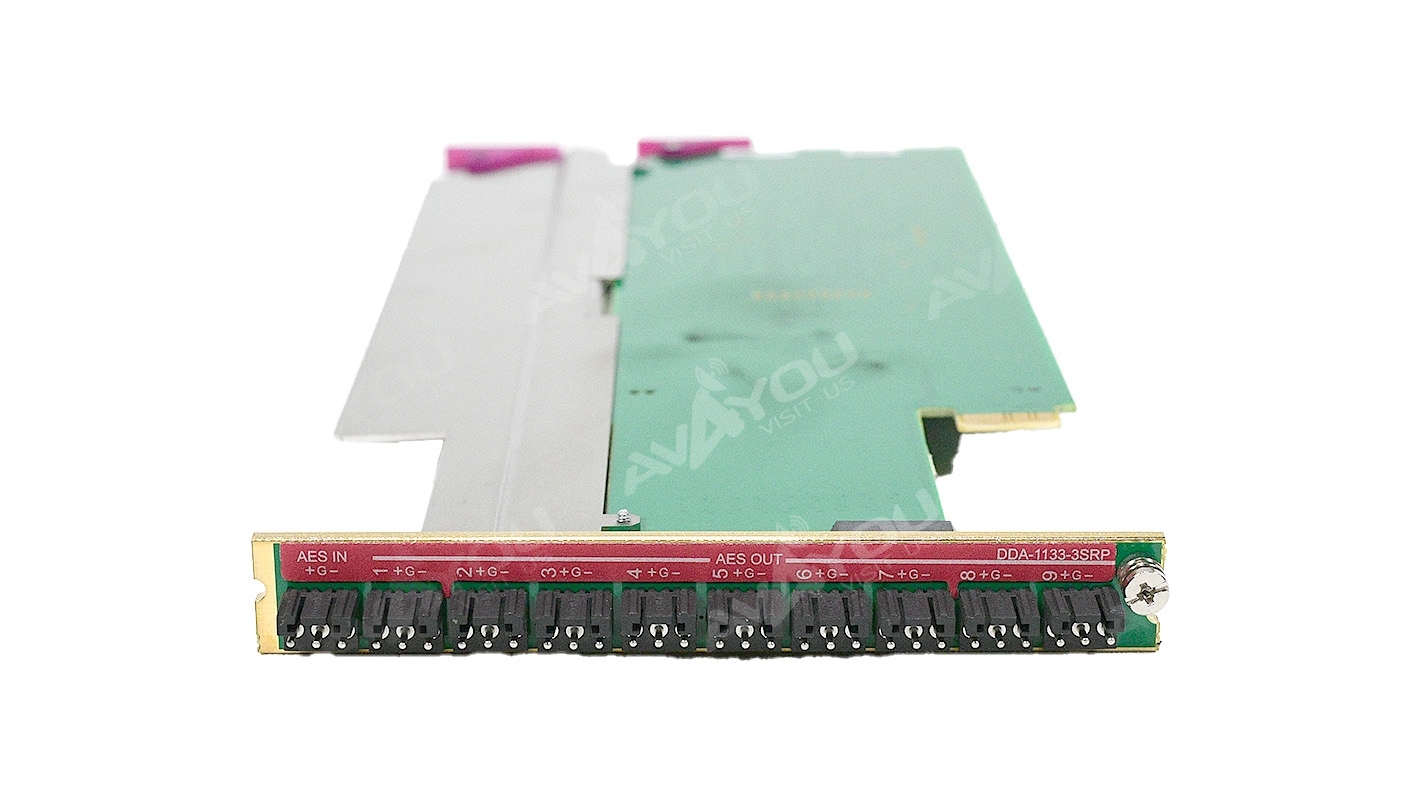 For sale is ONE used Miranda AES Audio DA card. The DDA-1113 digital audio DA that supports AES 110 ohm digital audio standard comes with a single backplane 3SRP for 1x9 configuration. Card fits only Densite 3 because of 3SRP backplane. Very good condition, just removed from the service. Because we have a quantity of these, appearances may vary, but condition is guaranteed to be better or equal to pictured sample. If you are looking for any other Miranda modular cards - we probably have them. Thousands of cards available. Check out our inventory.