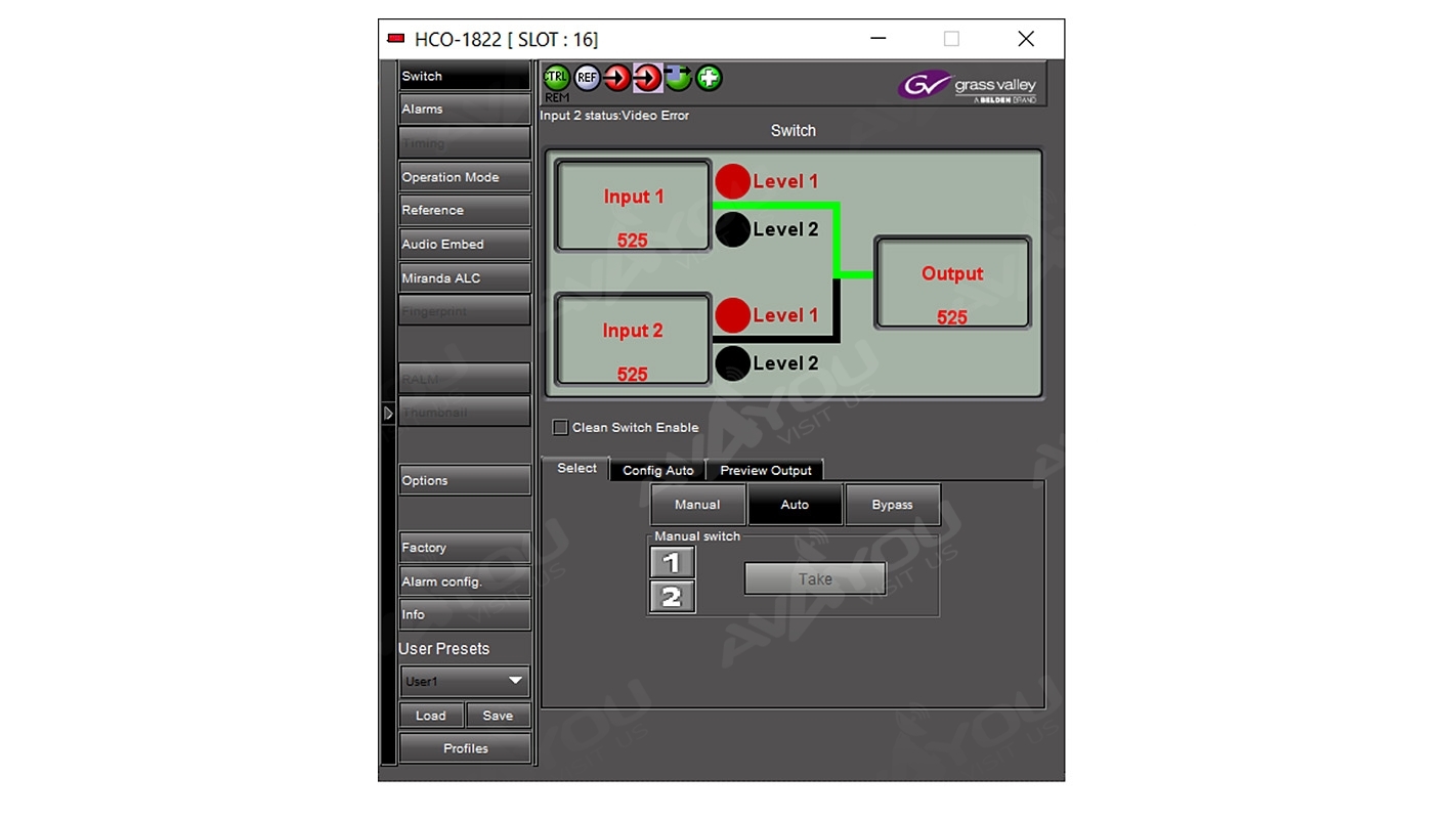 The HCO-1822 is a 2x1 HD/SD/ASI change-over which supports 16 channels of embedded audio and metadata. Change-overs are performed electronically by the HCO-1822s internal router. The module can perform a video and audio
