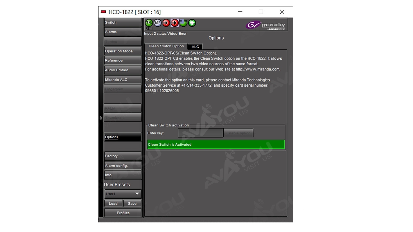 HCO-1822-OPT-CS Clean switch option