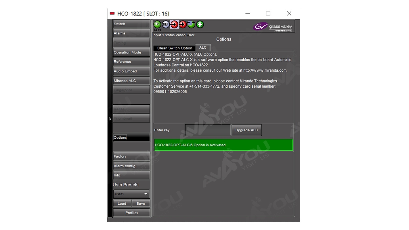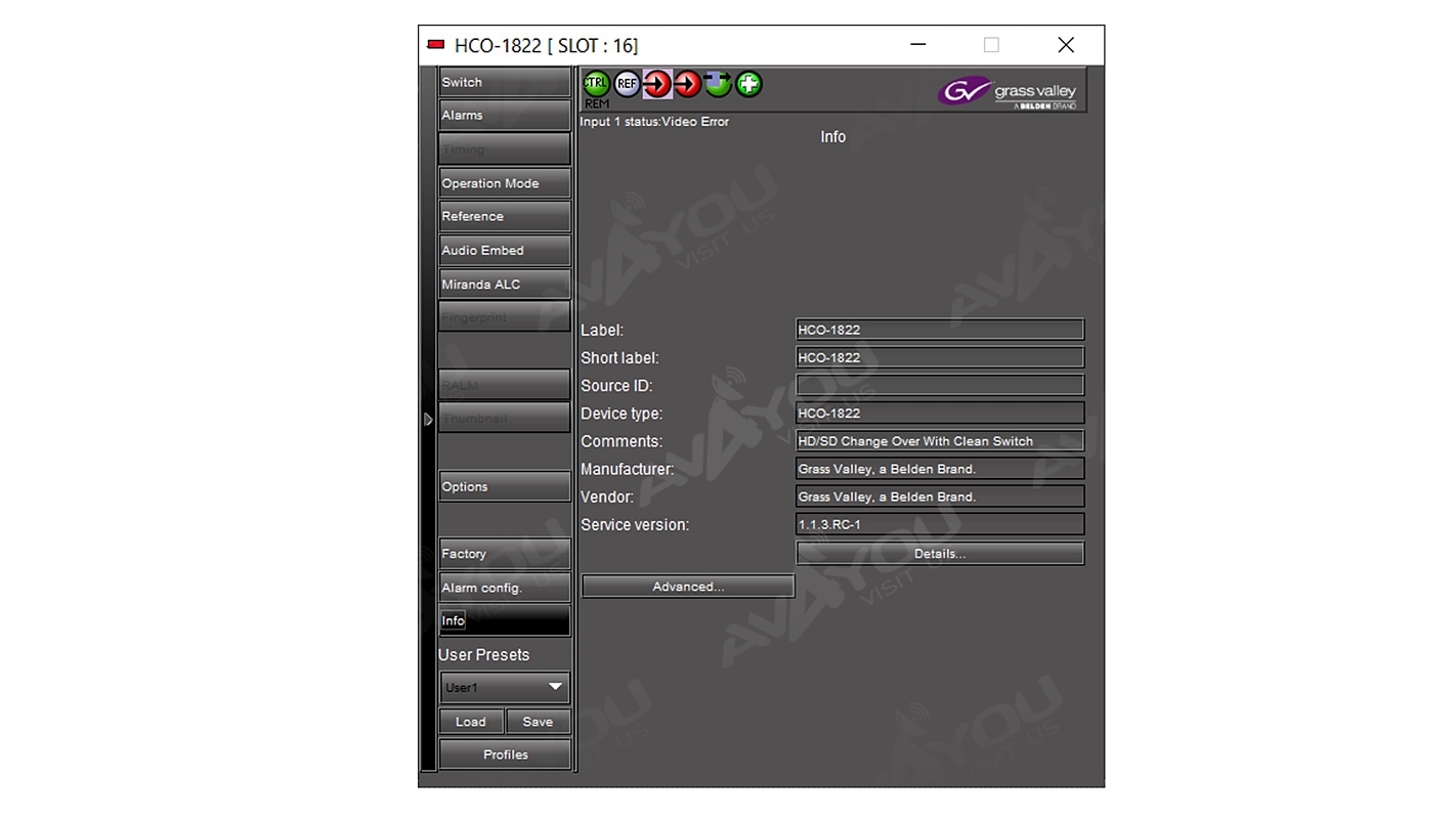 For sale is ONE (1) HCO-1822 2x1 Change-over. Very good working condition, just removed from the service. It comes with a backplane and extenders for 3RU frame. CS option is licensed as well as ALC6. Because we have a quantity of these, appearances may vary, but condition is guaranteed to be better or equal to pictured sample. If you are looking for any other Miranda modular cards - we probably have them. Thousands of cards available. Check out our inventory.