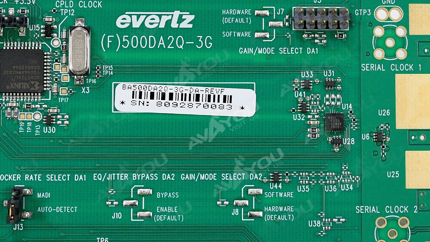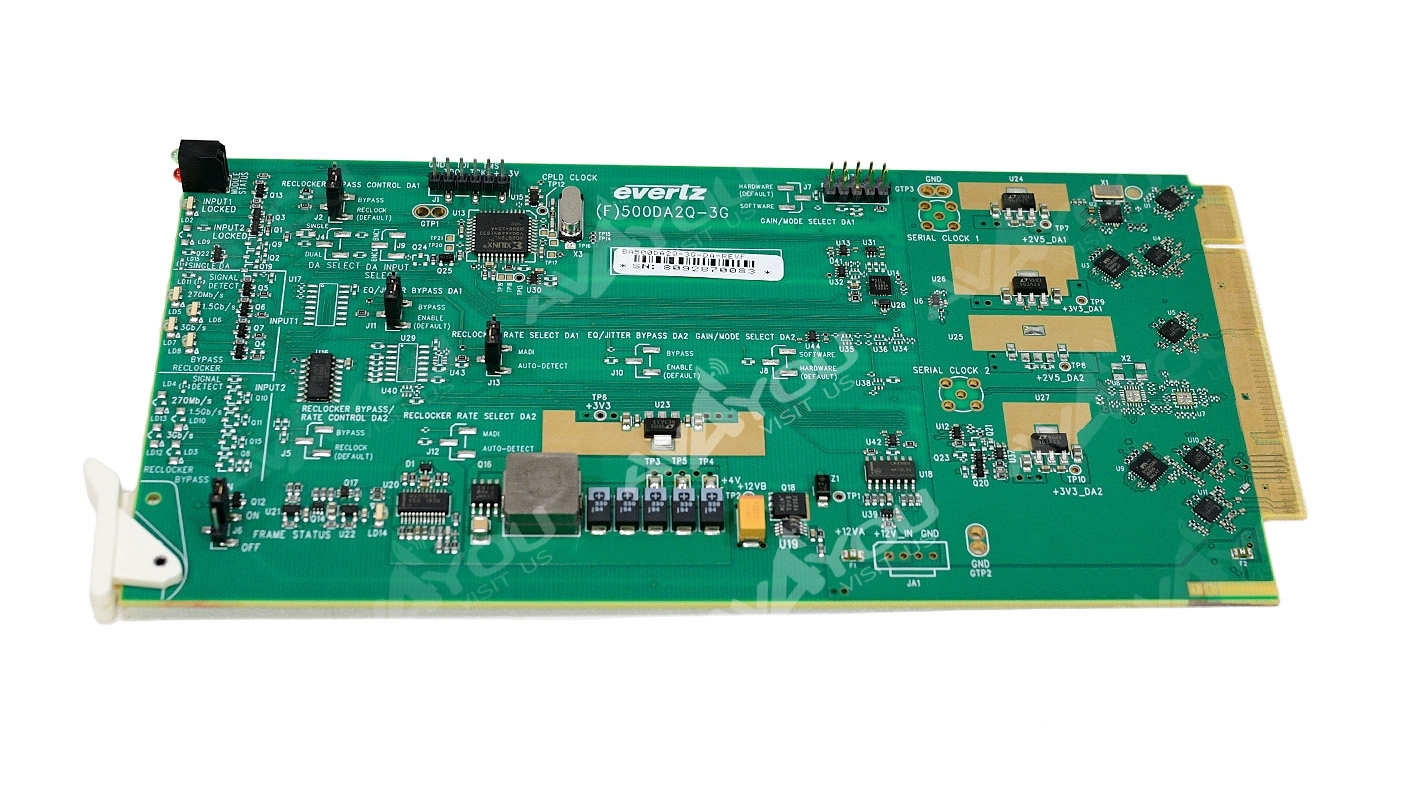 For sale is ONE (1) used 500DA-3G 3G/HD/SD-SDI DA card. Newest rev. F. Excellent, like condition. Because we have a quantity of these, appearances may vary, but condition is guaranteed to be equal to pictured sample. Serial numbers are unique to each unit sold and may be different from one depicted in the photos - we record all serial numbers of all items shipped. If you are looking for any other Evertz modular cards - we probably have them. Thousands of cards available. Check out our inventory.