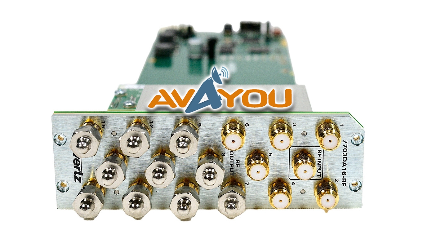 The Evertz 1x4, 1x8 and 1x16 RF active splitter series provide amplification, slope compensation and distribution of RF Signals from 40MHz to 3GHz. They handle any RF input modulation format and provide 4, 8 or 16 isolated outputs for further signal distribution.