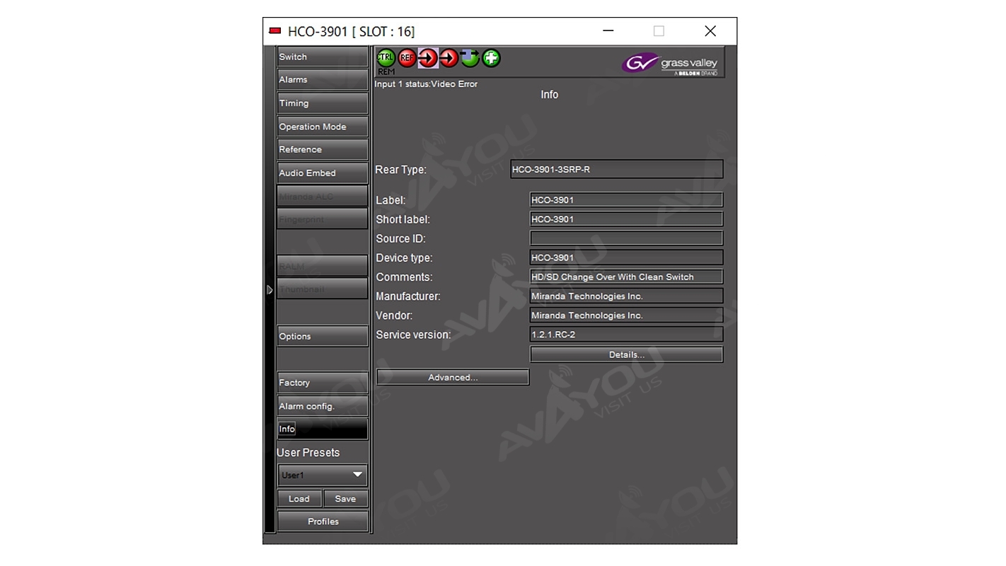 The HCO-3901 generates audio/video fingerprints. In combination with other cards streaming fingerprints for the same signals, an optional module in iControl can measure and report lip sync errors through the entire chain of a broadcast facility.
