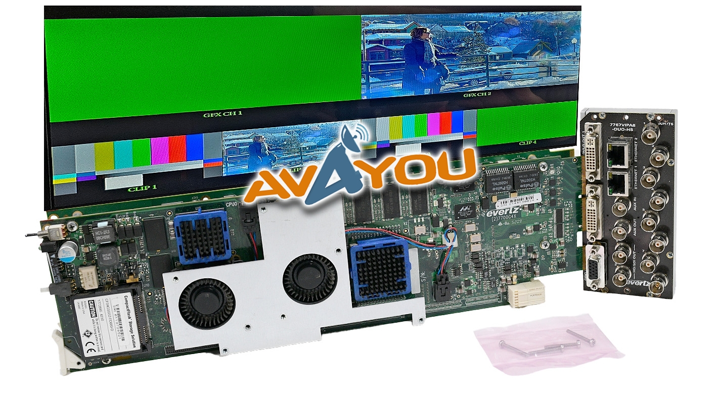 For sale is ONE (1) used 8 channel multiviewer. Comes complete with its backplane +3RU. Good working condition with some minor scratches/scuffs. Card was tested with 1080i and 1080p test signals, all worked fine. We test all multiviewer cards so buy with confidence. Custom layouts are uploaded. Set of screws is included. Because we have a quantity of these, appearances may vary, but condition is guaranteed to be better or equal to pictured sample. Serial numbers are unique to each unit sold and may be different from one depicted in the photos - we record all serial numbers of all items shipped. If you are looking for any other Evertz modular cards - we probably have them. Thousands of cards available. Check out our inventory.