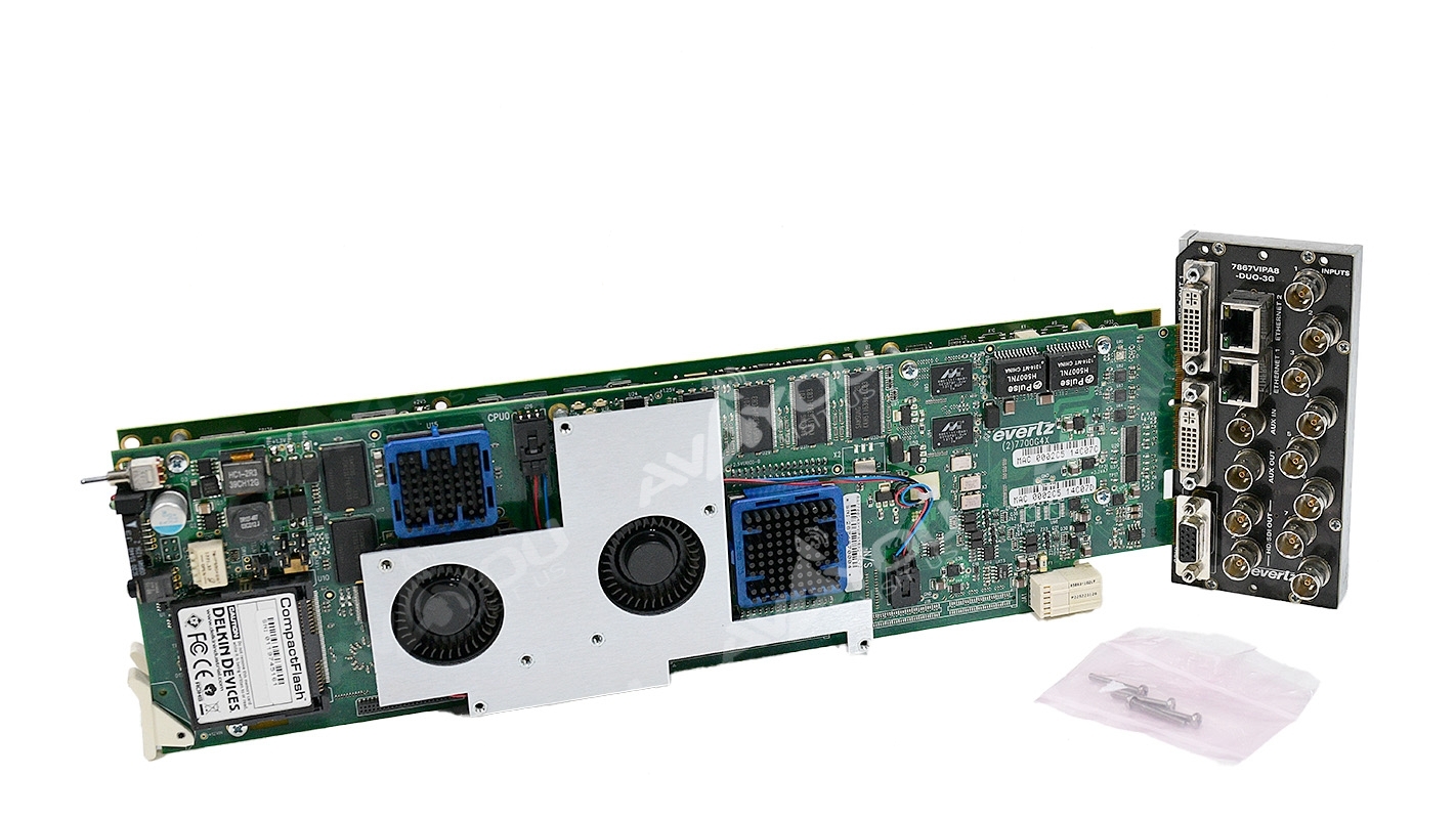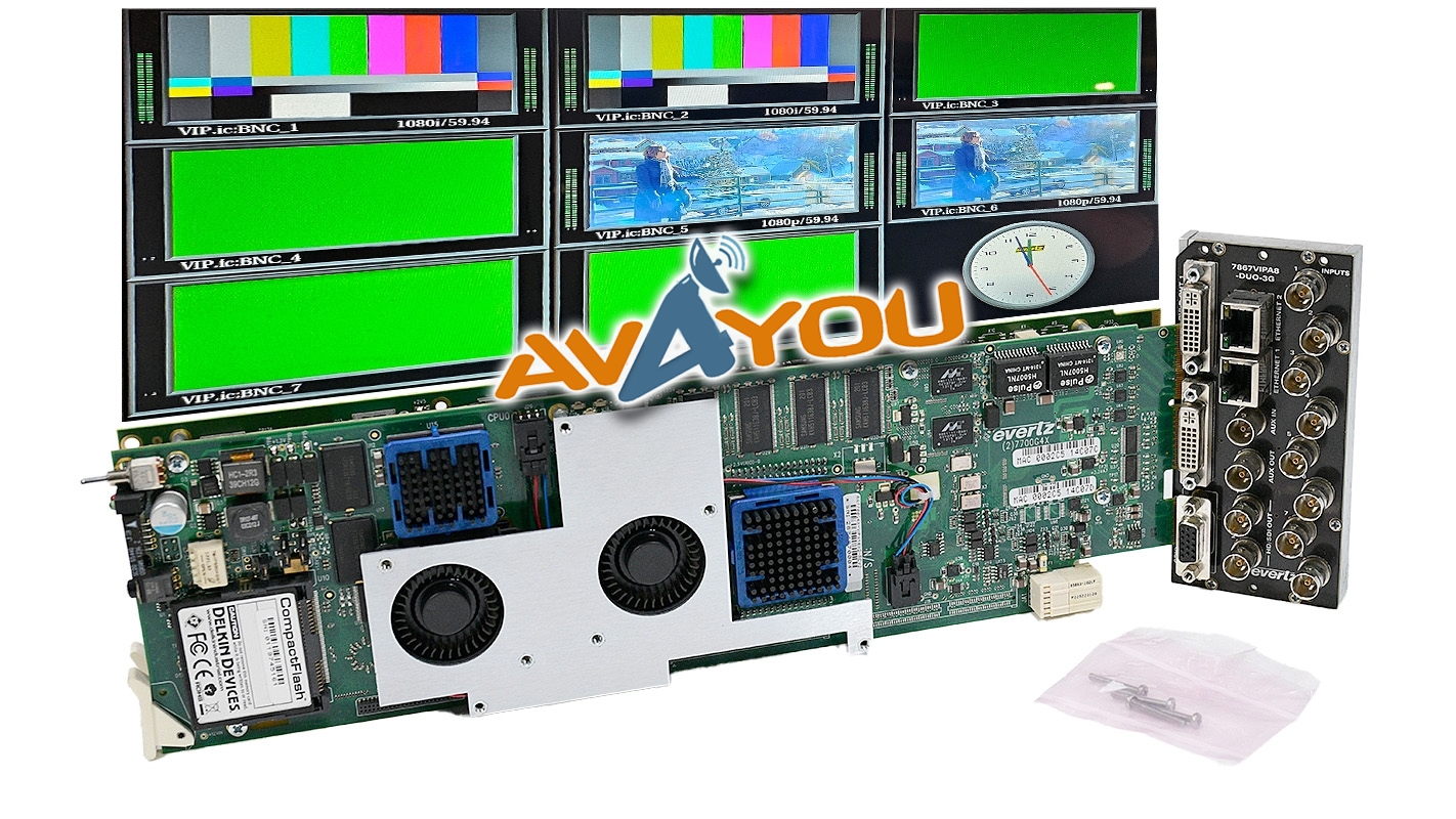 For sale is ONE (1) used 8 channel multiviewer. Comes complete with its backplane +3RU. +CSX CC option is enabled. Good working condition with some minor scratches/scuffs. Card was tested with 1080i and 1080p test signals, all worked fine. We test all multiviewer cards so buy with confidence. Custom layouts are uploaded. Set of screws is included. Because we have a quantity of these, appearances may vary, but condition is guaranteed to be better or equal to pictured sample. Serial numbers are unique to each unit sold and may be different from one depicted in the photos - we record all serial numbers of all items shipped. If you are looking for any other Evertz modular cards - we probably have them. Thousands of cards available. Check out our inventory.