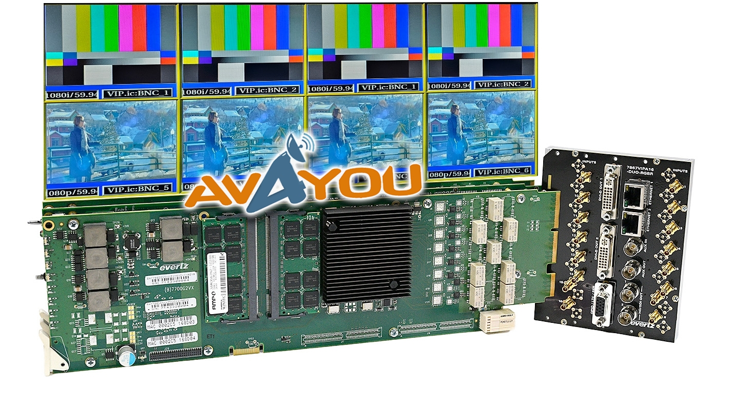 The VIP Advanced DUO series are available in five sizes: eight inputs, 16 inputs, 18 inputs, 24 inputs and 32 inputs each with up to two outputs. The VIPA-DUO inputs are auto-sensing SD, HD. Each VIP-A-DUO input can be displayed in any size, position or aspect ratio on any display. Both display outputs from the VIP-A-DUO are provided over DVI and HD-SDI, which are available simultaneously. The VIP-A-DUO provides the best quality input reproduction, borrowing the latest in video processing technology from Evertz® industry acclaimed conversion products.