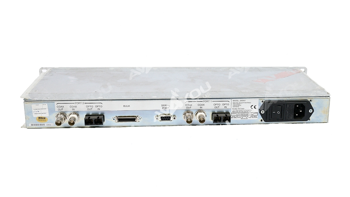 The Calrec Hydra2 JM5451 is a 1U, 19-inch rackmount fixed-format MADI I/O unit designed for Calrec Hydra2 networks, featuring multi-mode SC fibre connectors. It provides 2x MADI inputs and 2x MADI outputs, supporting 56 or 64 channels each at 48kHz, and is used to bridge MADI devices into the Hydra2 router system