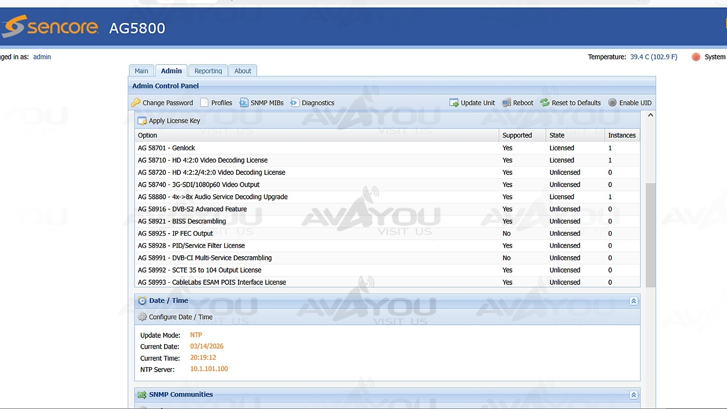 The AG 5800 is also a future-proof solution for multichannel primary distribution where video quality is at a premium. With the ability to upgrade to 4:2:2 or 1080p50/60 decoding in the future via a simple software license, the card is a safe choice for the long haul. Add in Sencore’s tradition of receiver decoder design and best-in-class ProCare support, and the AG 5800 provides the most compelling value package in the industry.