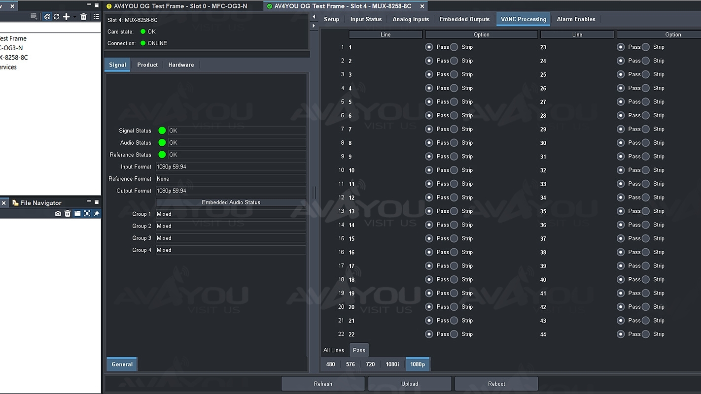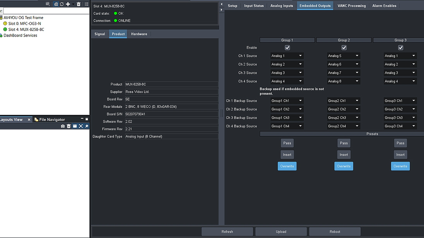 The MUX-8258-4C /-8C is extremely flexible in handling channel assignments and channel re-mapping as well as fully configurable append and overwrite capability for existing channels. Various configuration options are available for backup scenarios should a loss of input occur.